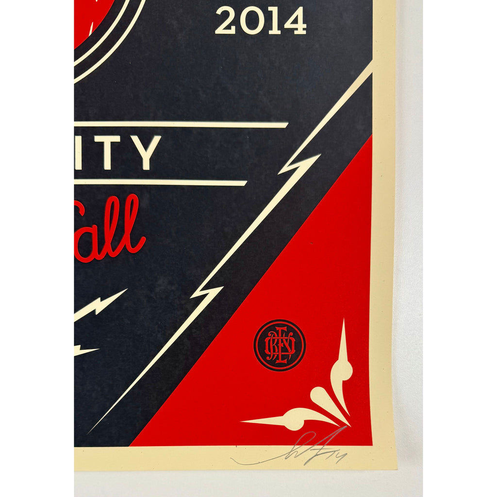 This is an original signed and numbered screenprint by Shepard Fairey, released in 2014 in an edition of 500.